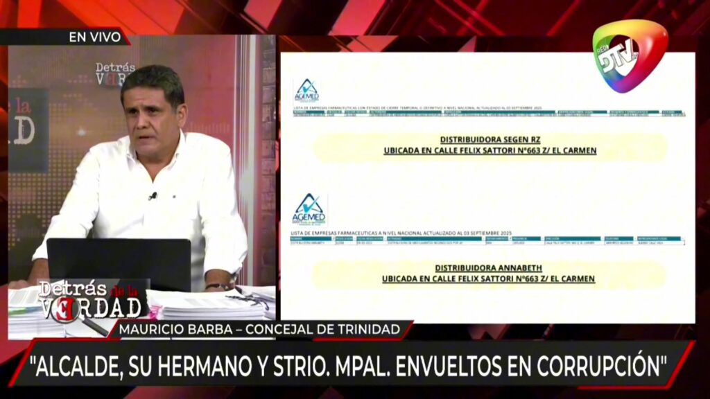 El concejal municipal de Trinidad, Mauricio Barba, denunció la existencia de una presunta red de corrupción en la Alcaldía, que desde 2021 habría beneficiado con más de 17 millones de bolivianos a dos distribuidoras de medicamentos vinculadas a familiares de funcionarios municipales.